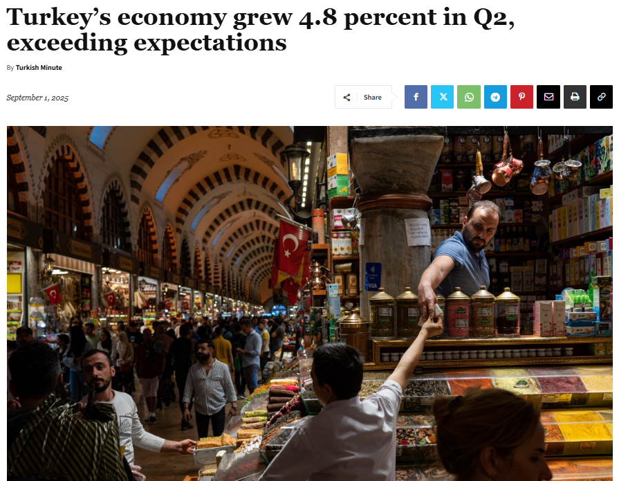根据土耳其统计局2025年9月1日发布的数据,2025年第二季度土耳其GDP同比增长4.8%,展现出稳健的复苏势头。该国凭借优越的地理位置,以及制造业、旅游业和农业等产业的支撑,有效推动了经济增长。