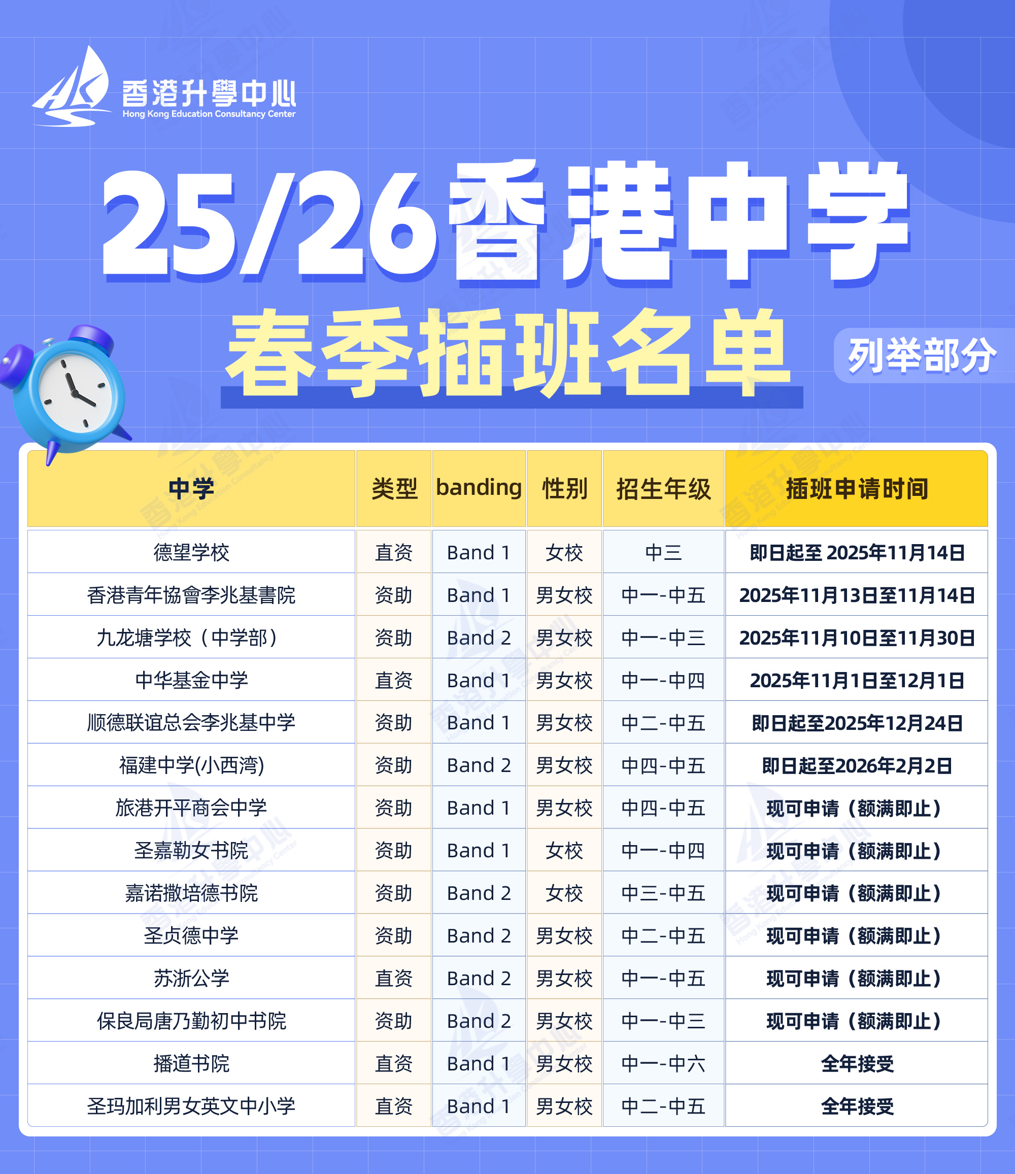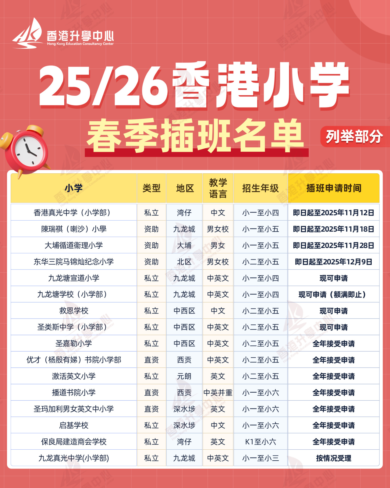 目前多所香港中小学已开放春季插班申请,部分学校甚至今年即可入学:
