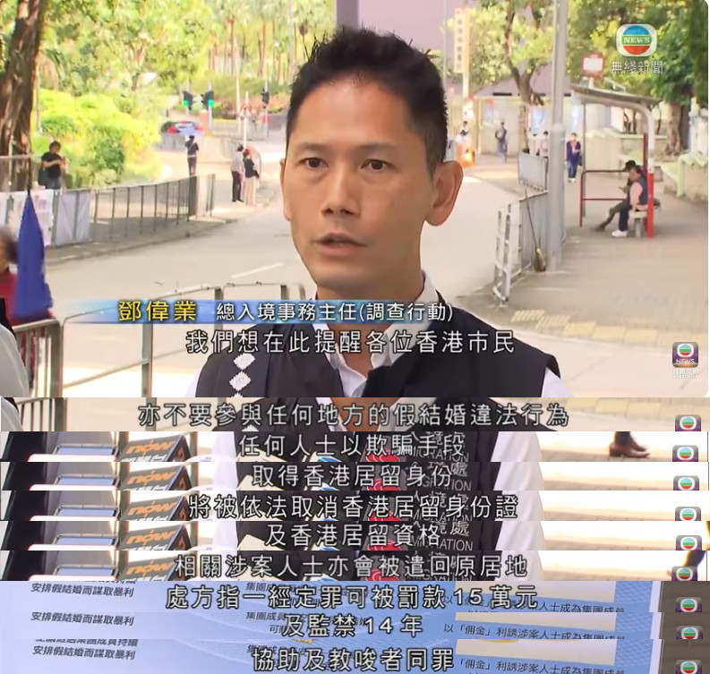 该犯罪集团的主要作案手段是安排“假结婚”。他们以“高薪工作”为诱饵招募香港本地居民作幌子,再为其匹配有意获取香港身份的内地人士,并伪造全套结婚程序。每次服务收取12万至35万港元不等的费用,涉案总金额已超过750万港元。