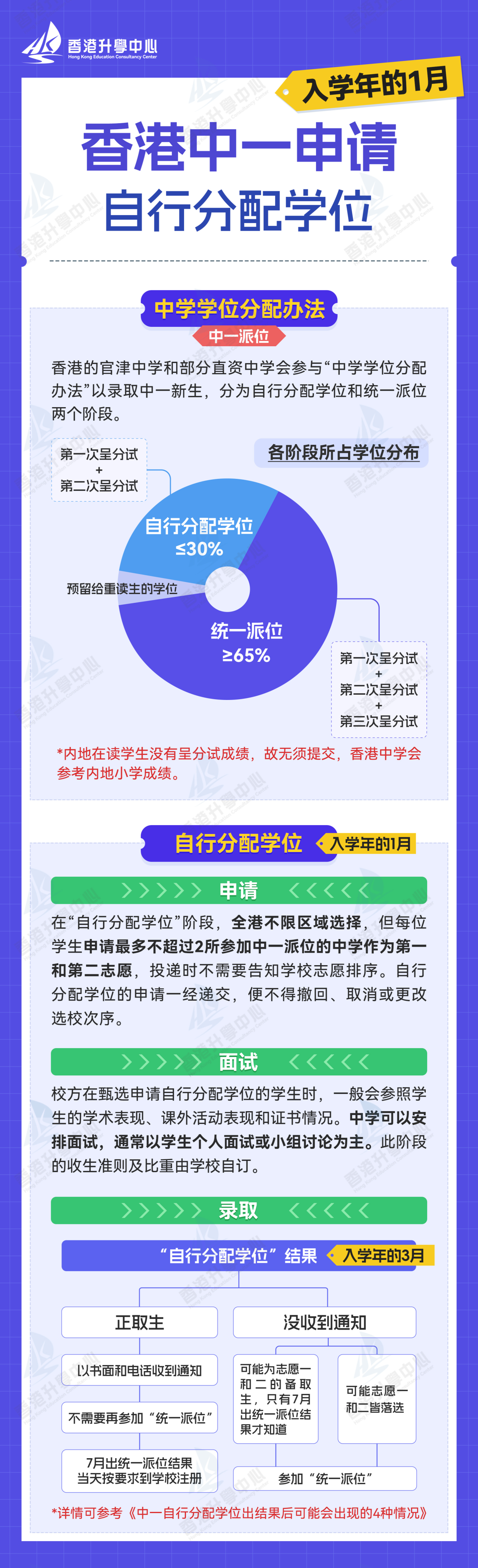 由于不限校网,中一自行分配学位成为许多以Band1中学为目标的香港家长必争之地,竞争十分激烈。对内地孩子来说,中一自行分配学位阶段并不看小五小六的呈分试成绩,所以中一自行分配学位对于内地家长来说完全是一次“占头位”的好时机!而且内地来香港插班的孩子没有小五小六的呈分试成绩,无法参与第二轮被称为“大抽奖”的中一统一派位,因此主要机会就集中在自行分配学位与叩门两个环节。两者间隔长达数月,准备过程颇具挑战,HKECC香港升学中心提醒各位家长:早准备,胜算更大。
