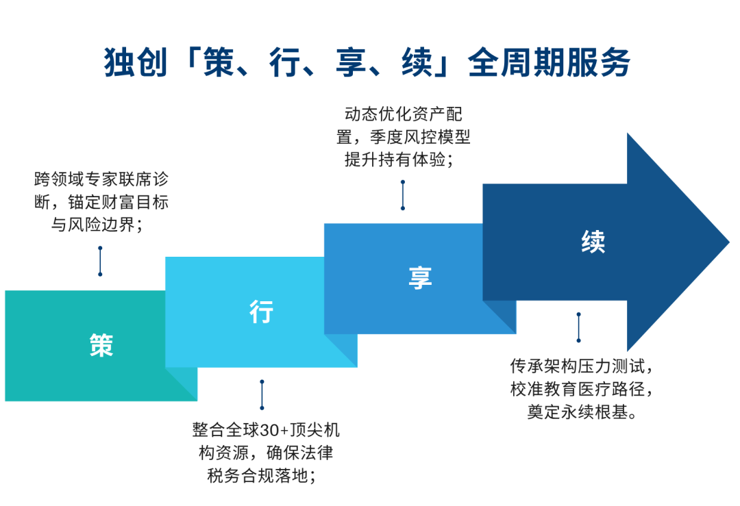 • 顶层家办基因:汇聚前私人银行家、财务策划师、注册校长及专科医生组成的专家团队,提供从身份规划到财富传承的“策、行、享、续”全周期家办级服务。