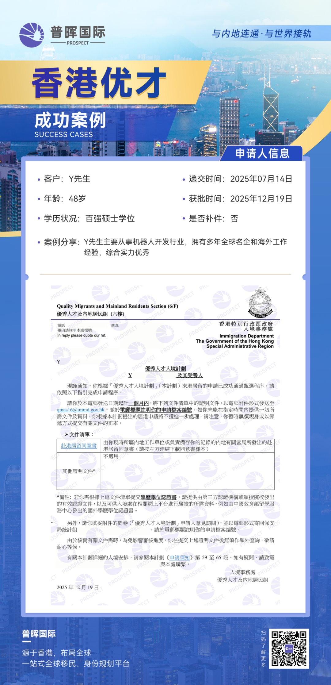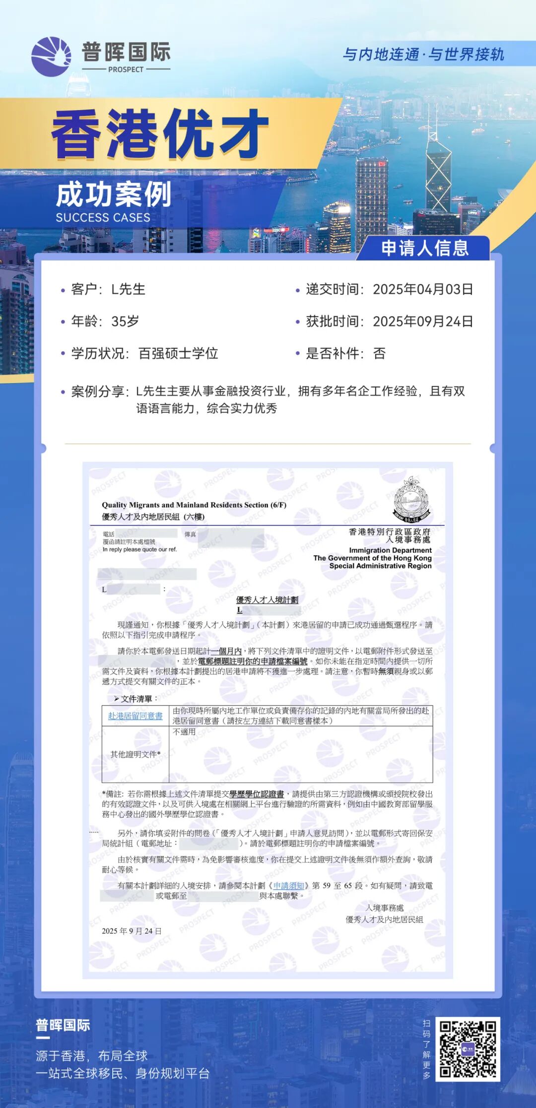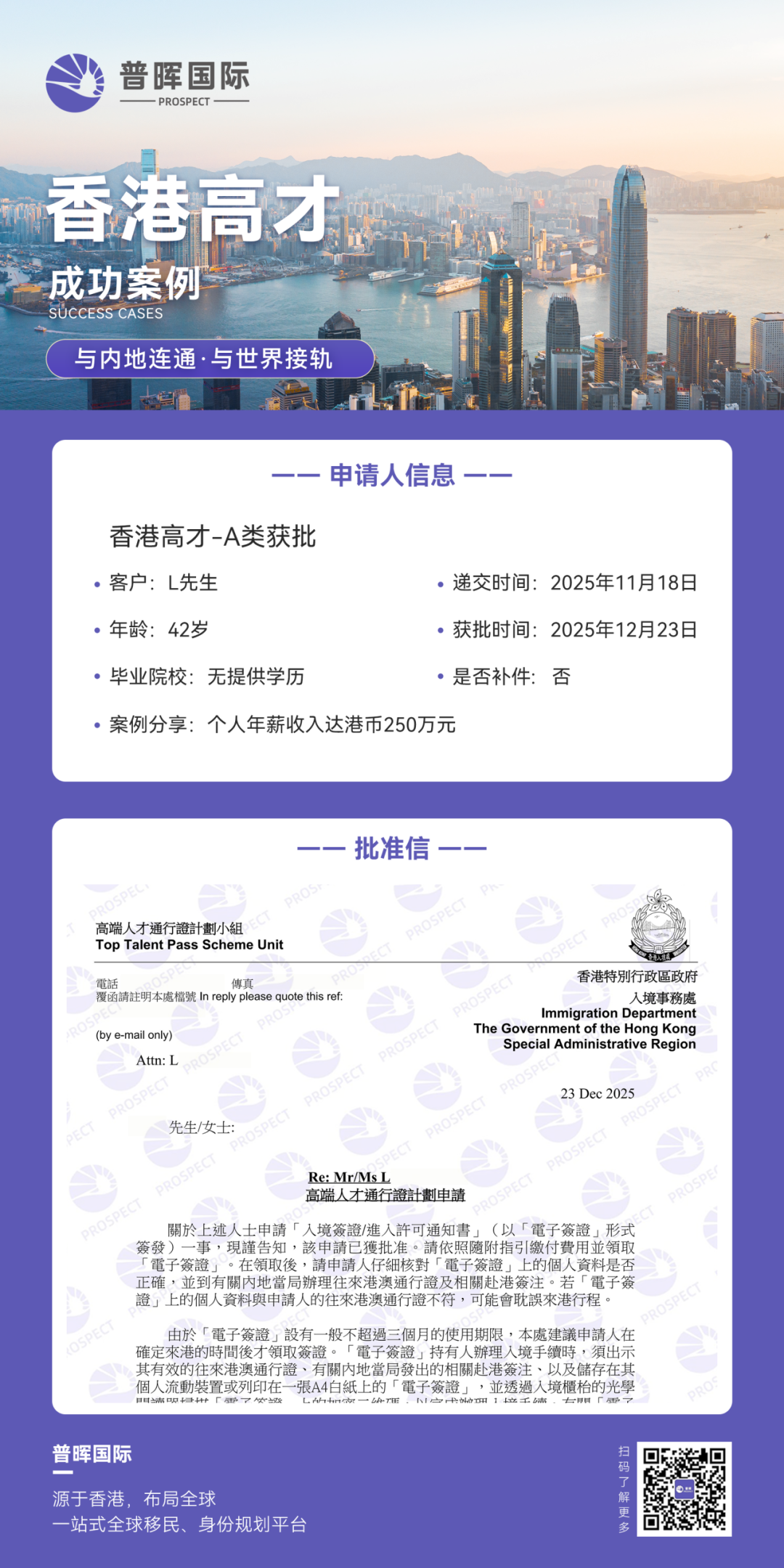 成功案例 | 普晖国际首个“香港新投资移民”正式获批个案分享