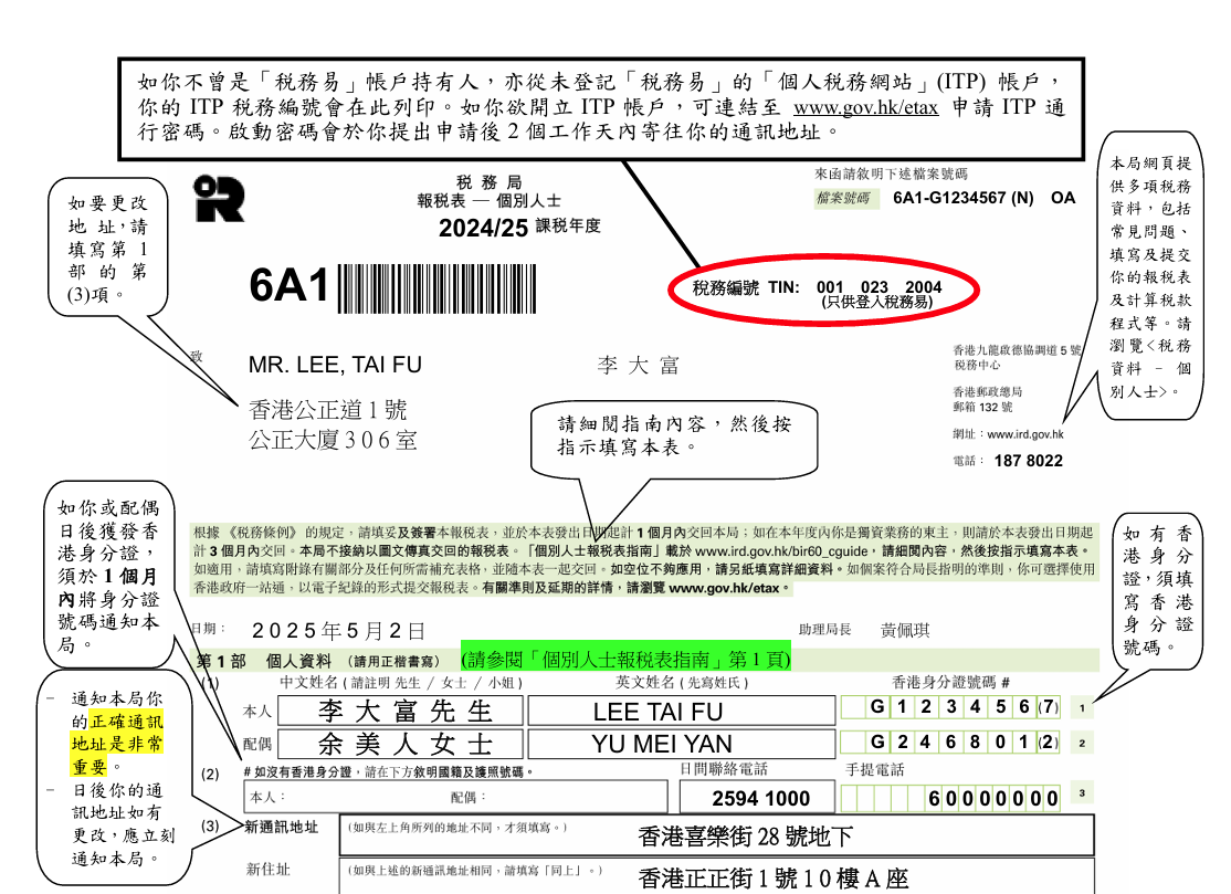 提交报税表后,税务局会进行评税并寄出《评税通知书》,列明应课税收入、免税额、扣除项目及最终应缴税款(通常于10月前后发出)。通知书还会包含下一课税年度的预缴税款(参考上一年度税款计算)。