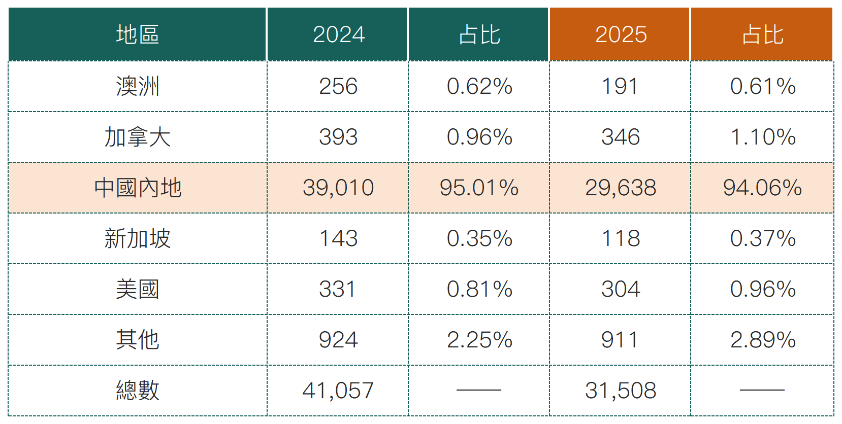 香港高才通2025年获批31,508宗,同比锐减25%,内地申请人占比94%。政策红利期后,热度回归理性,加上审核趋严,总量自然收缩。