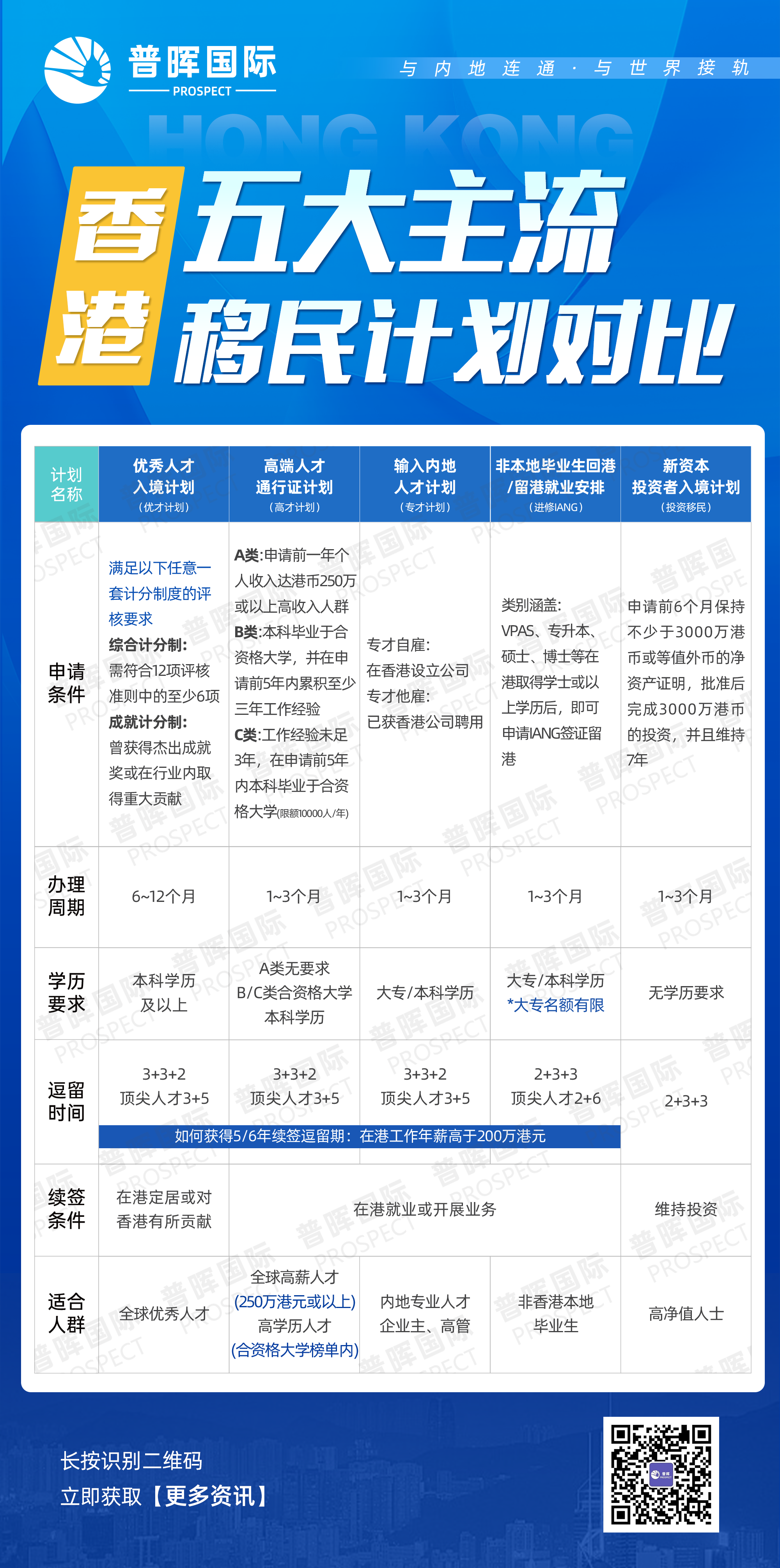 高端人才通行证计划(高才通)A类:申请前一年个人收入或持股公司利润达250万港币以上,审批快至四周。