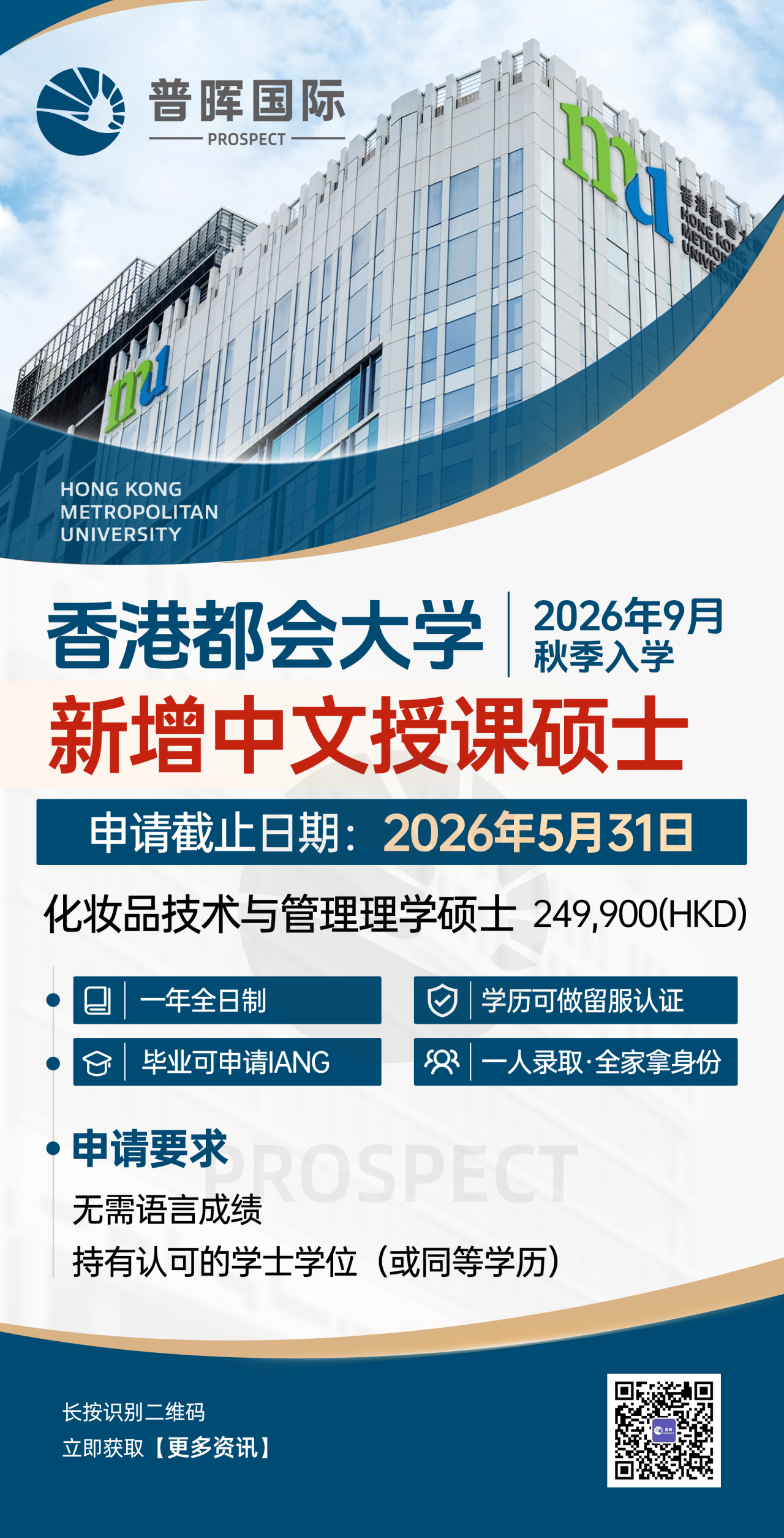 而就在近日,香港都会大学逆势加推「化妆品技术与管理理学硕士」,采用中文授课,不设语言成绩门槛,并同步开放26秋季与27春季两轮入学申请。