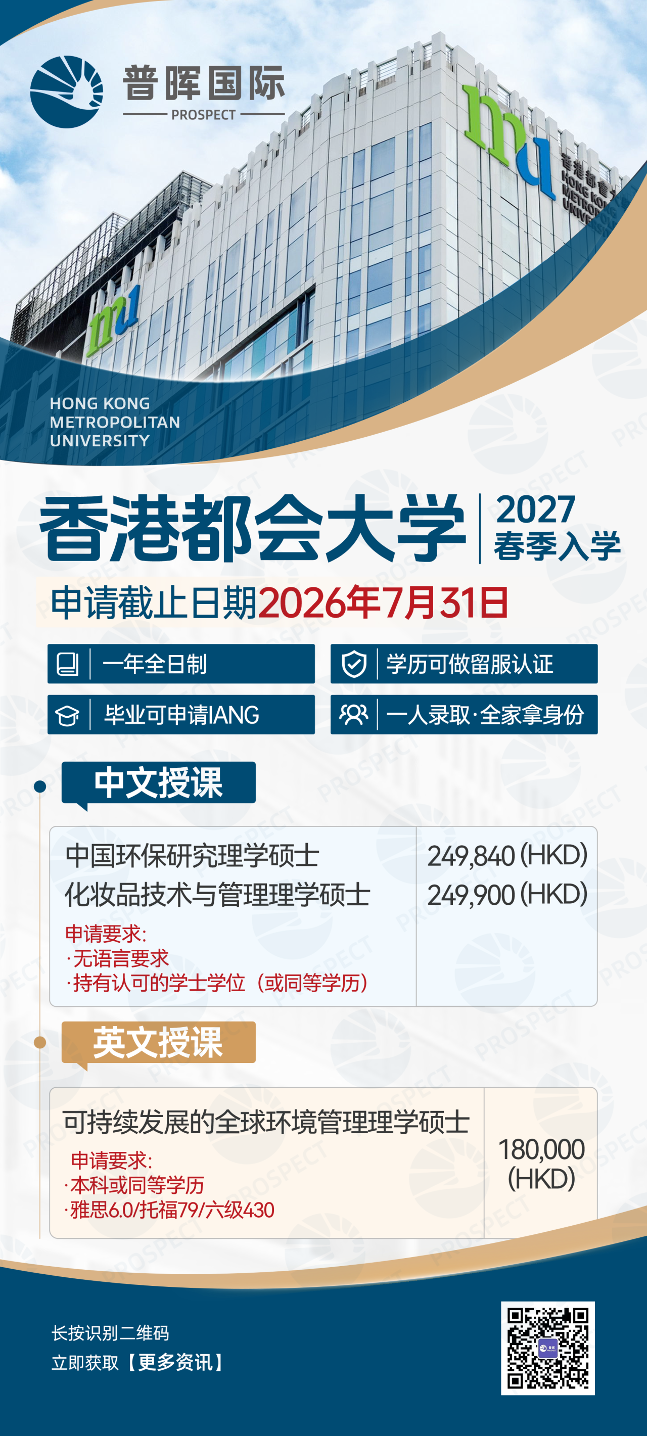 如果对化妆品领域兴趣不高,还可以考虑被称为“内地人赴港读研优选”的「中国环保研究理学硕士」,2027年春季班目前仍在招生,截止日期为2026年7月31日。