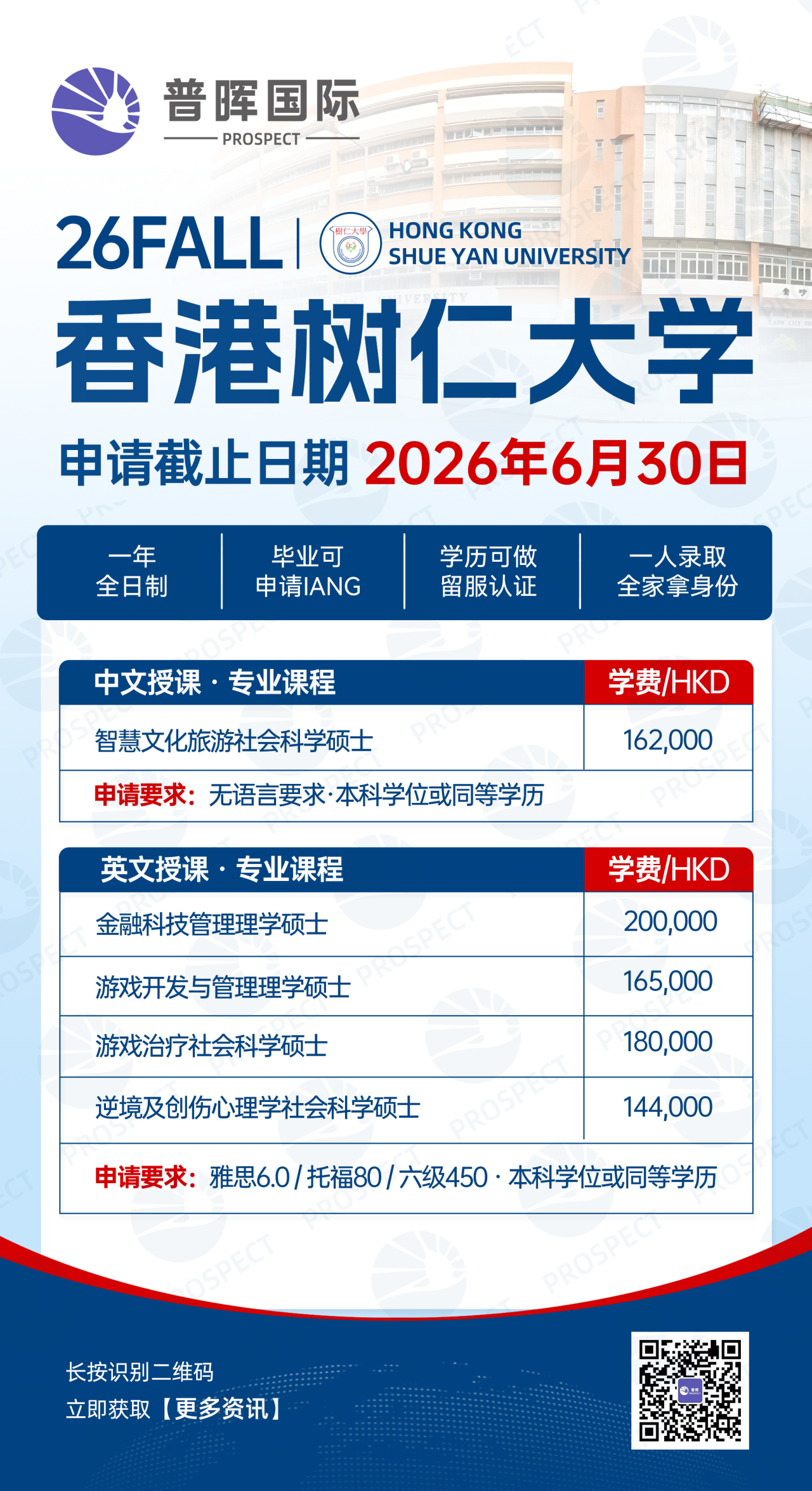 该课程采用普通话授课,不设英语成绩要求,修毕一年全日制课程后即可申请IANG签证,实现“一人进修,配偶及子女同步取得香港身份”的家庭规划。时间窗口紧迫,建议立即着手准备。